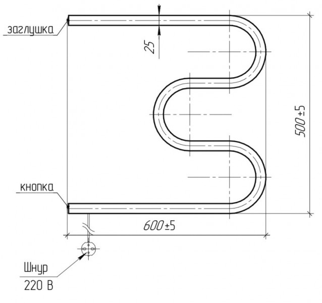 Полотенцесушитель электрический Тера 500x600 М-образный без упаковки ПСН-05-03