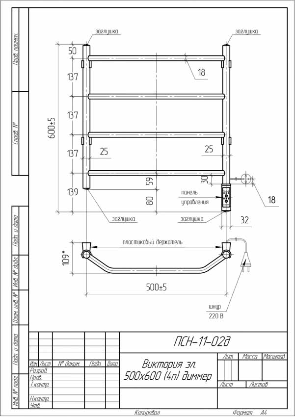 Полотенцесушитель электрический Тера 500x600 Виктория с терморегулятором ПСН-11-02д