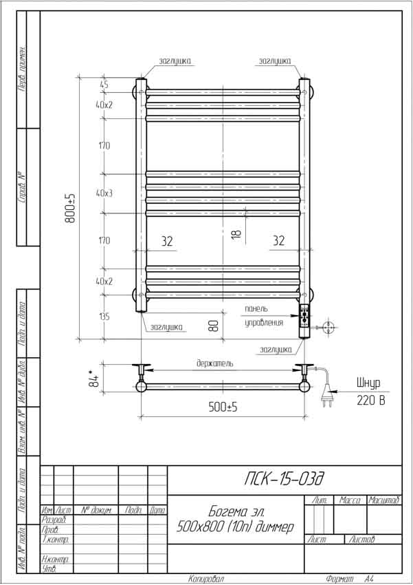 Полотенцесушитель электрический Тера 500x800 Богема с терморегулятором ПСК-15-03д