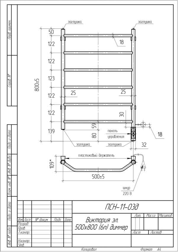 Полотенцесушитель электрический Тера 500x800 Виктория с терморегулятором ПСН-11-03д
