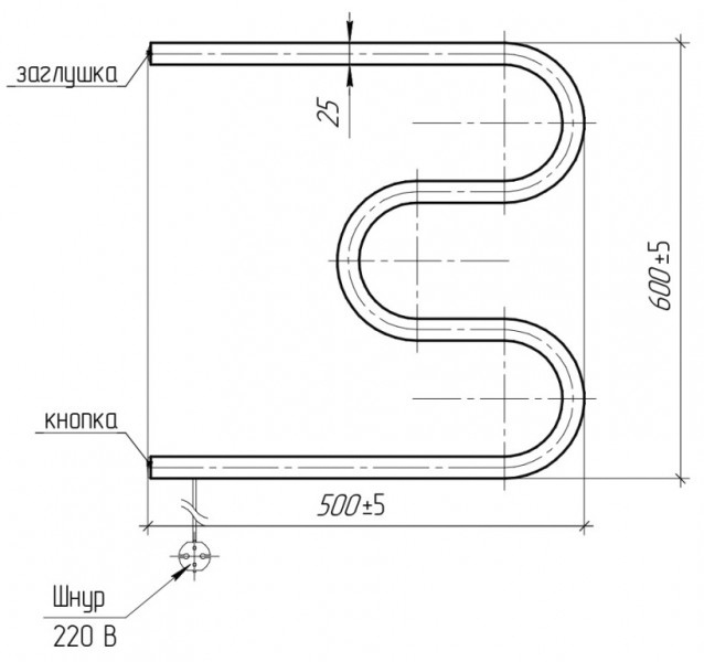 Полотенцесушитель электрический Тера 600x500 М-образный без упаковки ПСН-05-04