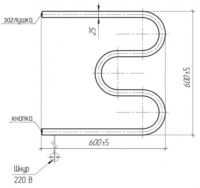 Полотенцесушитель электрический Тера 600x600 М-образный без упаковки ПСН-05-05