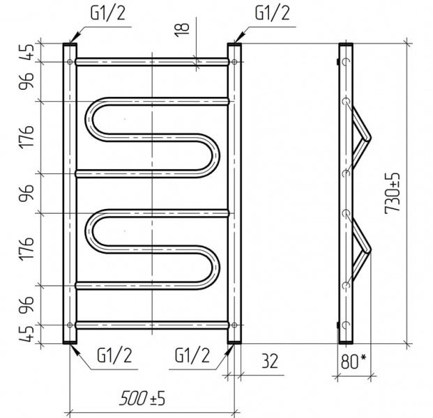Полотенцесушитель водяной Тера 500x800 Лиана ПСБ-11-08