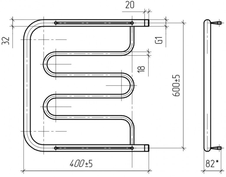 Полотенцесушитель водяной Тера 600x400 Фокстрот ПСВ-02-08