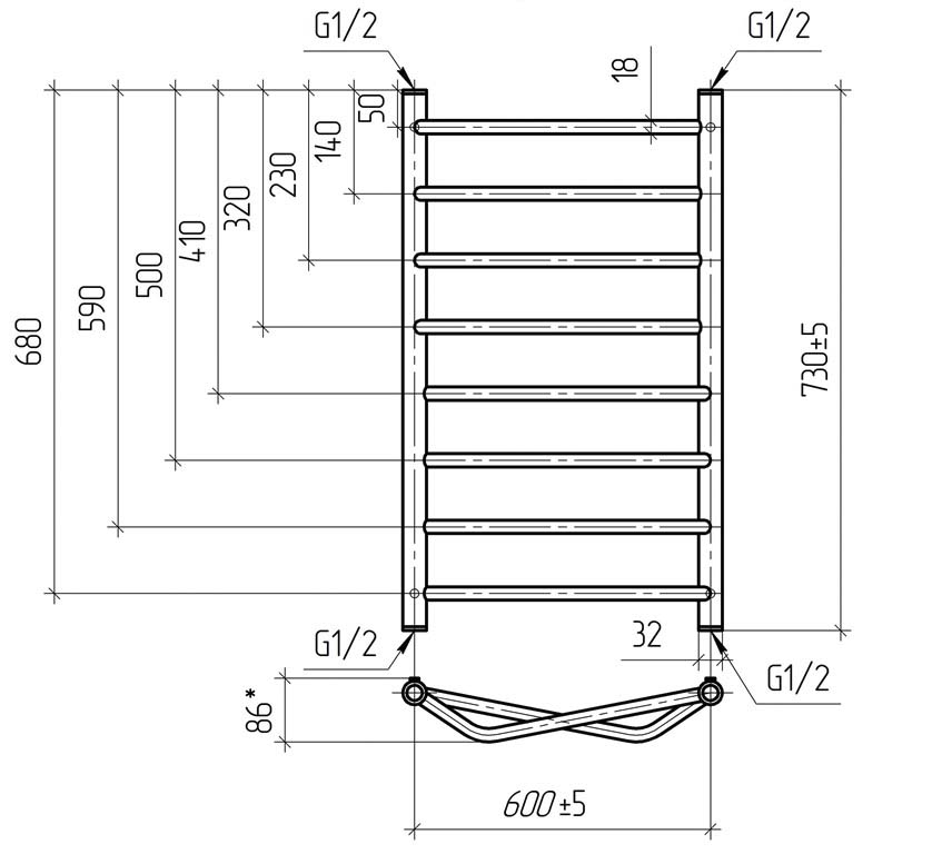 Полотенцесушитель водяной Тера 600x800 Баттерфляй ПСБ-25-14