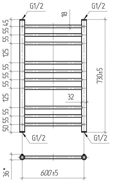 Полотенцесушитель водяной Тера 600x800 Богема ПСБ-24-14