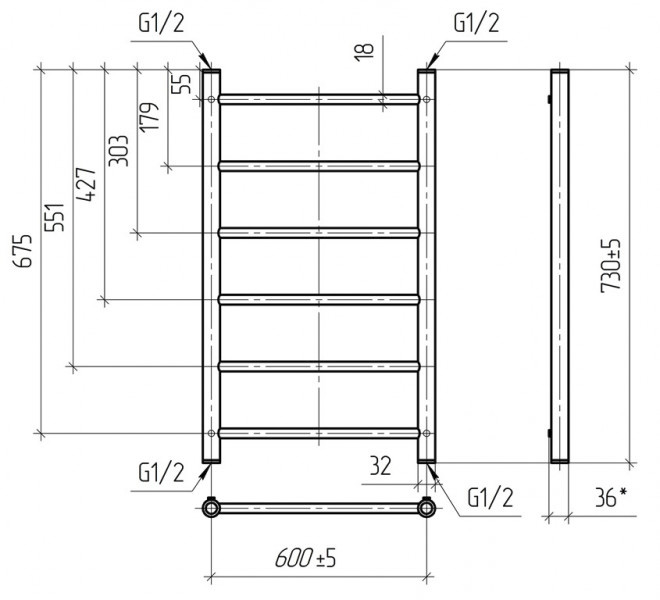 Полотенцесушитель водяной Тера 600x800 Классика ПСБ-08-14