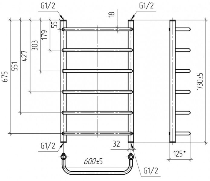 Полотенцесушитель водяной Тера 600x800 Мост ПСБ-09-14