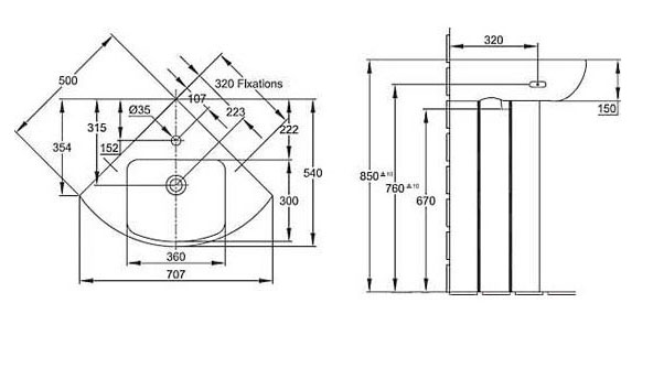 Раковина угловая Jacob Delafon Odeon Up E4710, Франция