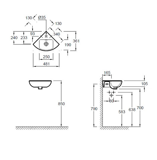 Раковина угловая Jacob Delafon Odeon Up E4733, Франция