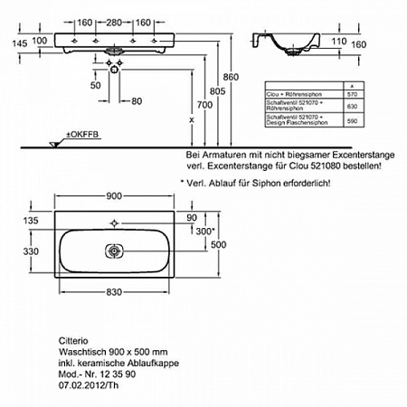 Раковина на столешницу 90см Geberit Citterio 500.547.01.1