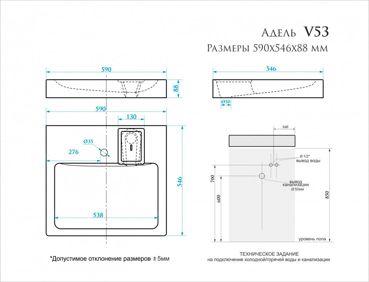 Раковина над стиральной машиной Bergg Адель V53