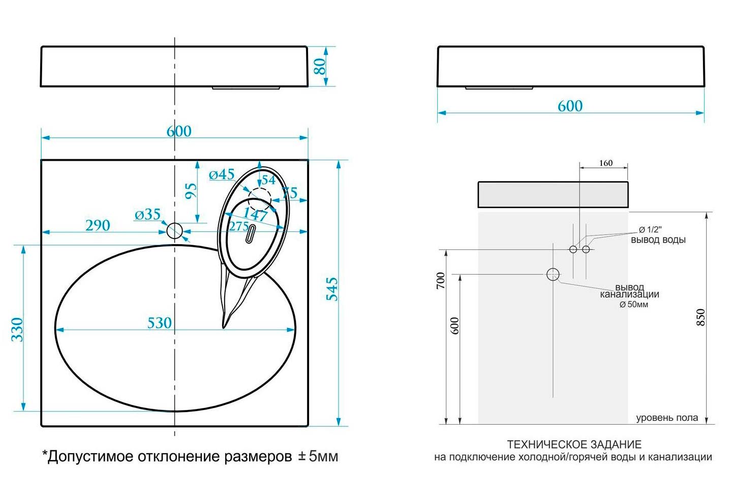 Раковина над стиральной машиной Bergg Смайл V55