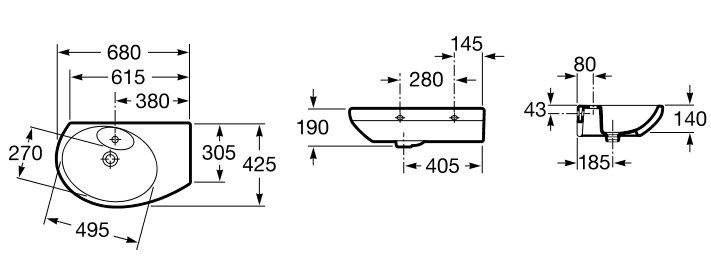 Раковина ROCA Dama Senso 425х680 (327519000) угловая, правая, Испания