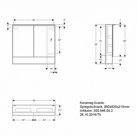 Шкаф зеркальный 90см Geberit Acanto 500.646.00.2