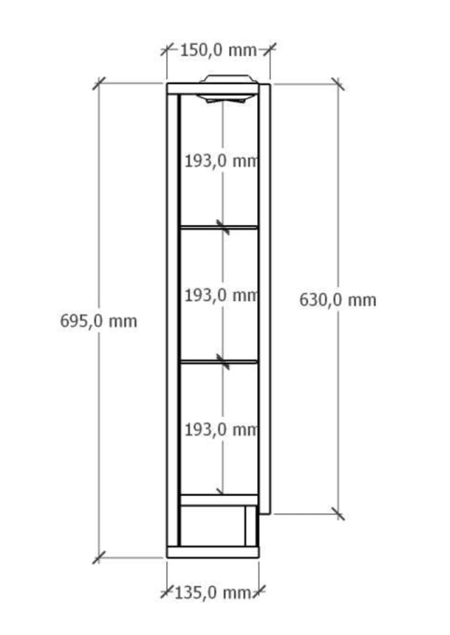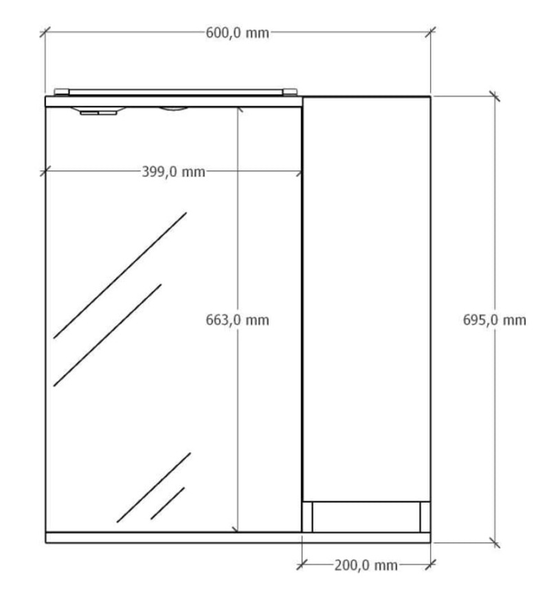 Шкаф зеркальный Кассандра 600 с подсветкой, прав. слейт GRADEONIKA