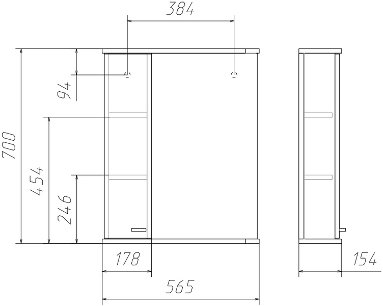 Шкаф-зеркало Айсберг Радуга белый 55 левый