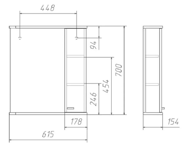 Шкаф-зеркало Айсберг Радуга белый 60 левый