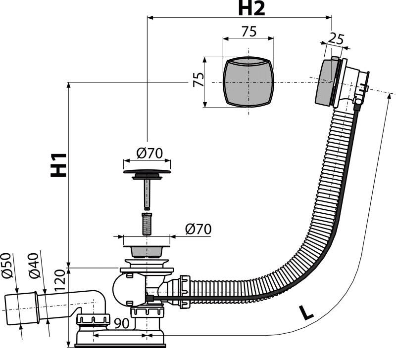 Сифон для ванны Alcadrain полуавтомат A51CRM/60