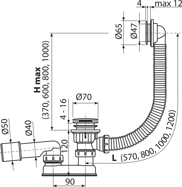 Сифон для ванны Alcadrain Click Clack A505CRM