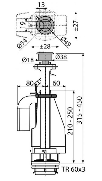 Сливной механизм со двойной кнопкой Alcaplast А08A