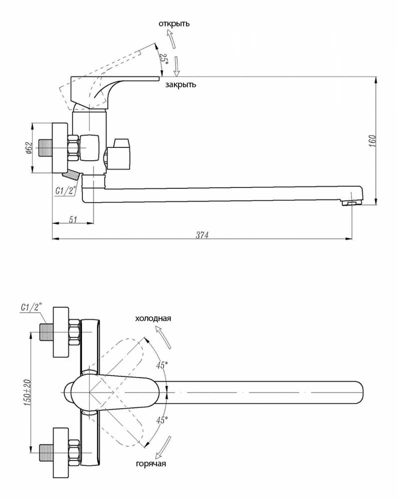 Смесители для ванны с длинным изливом