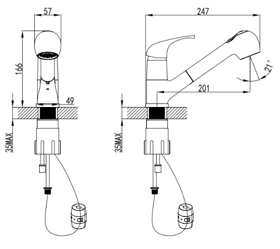 Смеситель для кухни MILARDO Davis DA2SBP0M05 с выдвижной лейкой