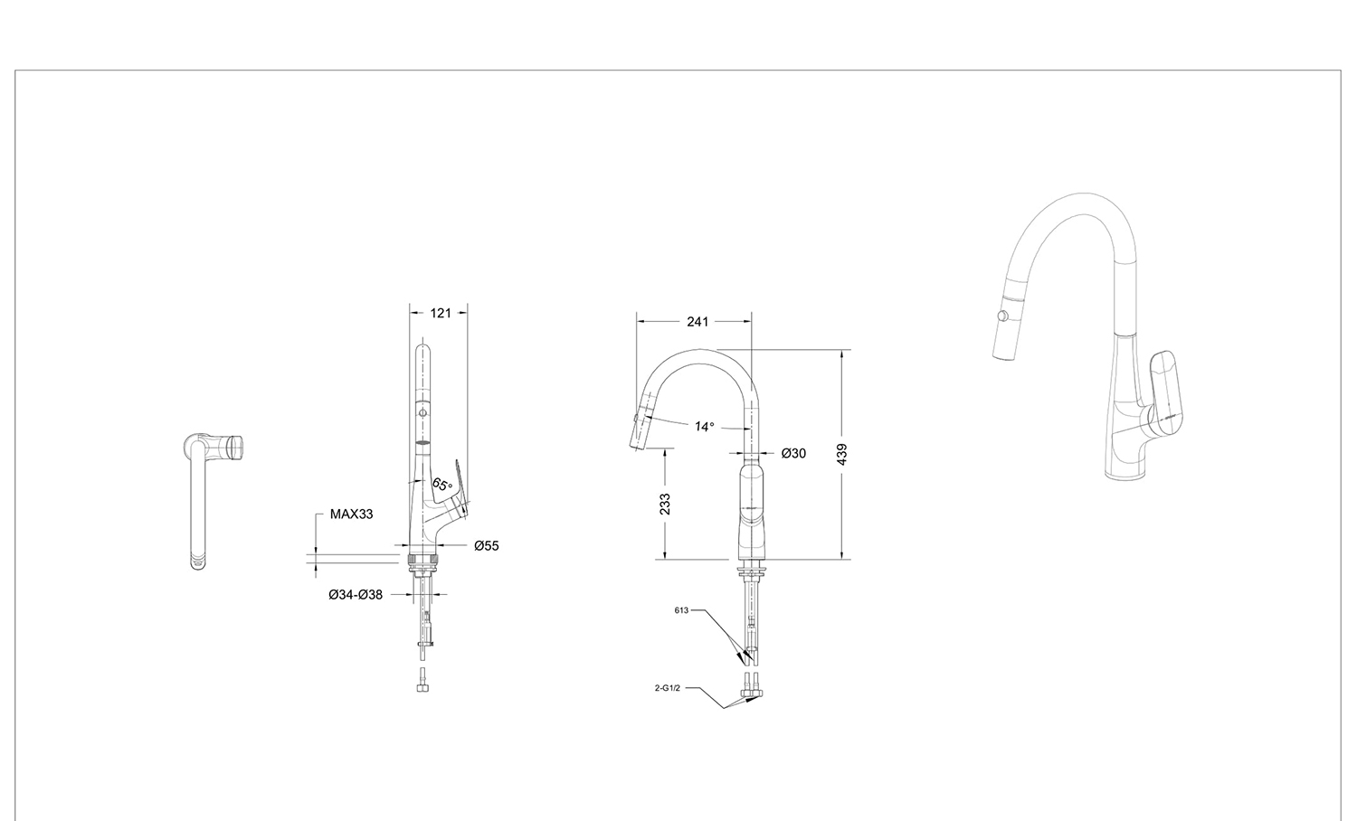 смеситель для кухни с вытяжным изливом Bravat F7428563CP-ENG