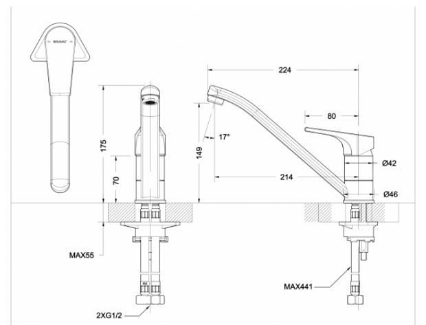 Смеситель для мойки BRAVAT VEGA F7119177CP-1