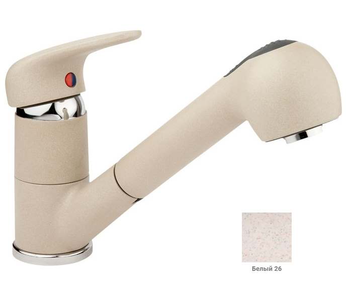 Смеситель для мойки Polygran с душевой лейкой, белый