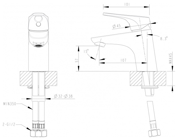 Смеситель для умывальника без донного клапана BRAVAT Drop-D F148162C
