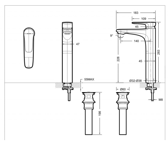 Смеситель для умывальника без донного клапана BRAVAT SOURCE F1173218CP-A-ENG