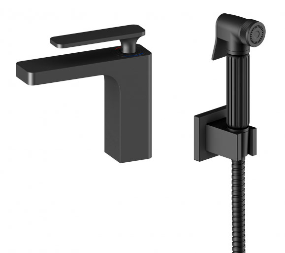 Смеситель для умывальника с гигиеническим душем Timo Torne черный 4360/03G