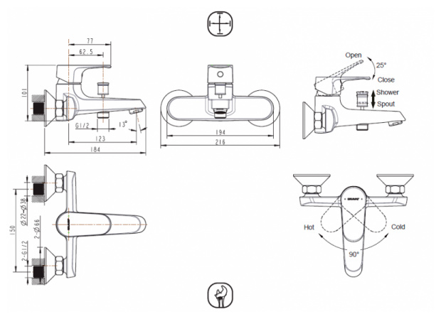 Смеситель для ванны BRAVAT ALFA F6120178CP-01