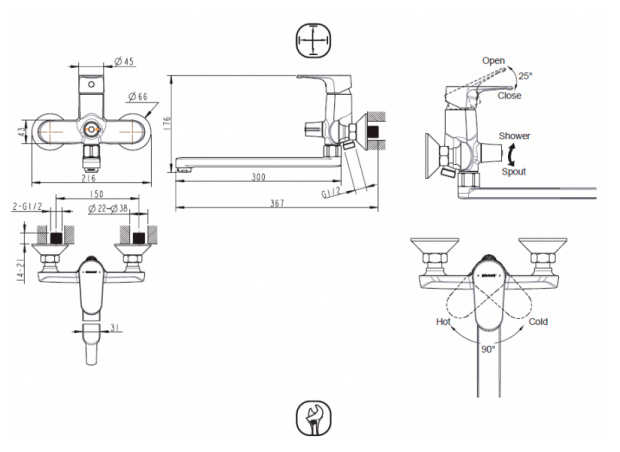 Смеситель для ванны BRAVAT ALFA F6120178CP-01L