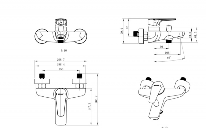 Смесители для ванны с коротким изливом