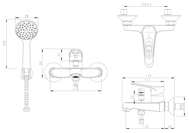Смесители для ванны с коротким изливом
