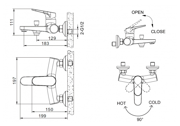Смеситель для ванны BRAVAT ELER F6191238CP-01-RUS