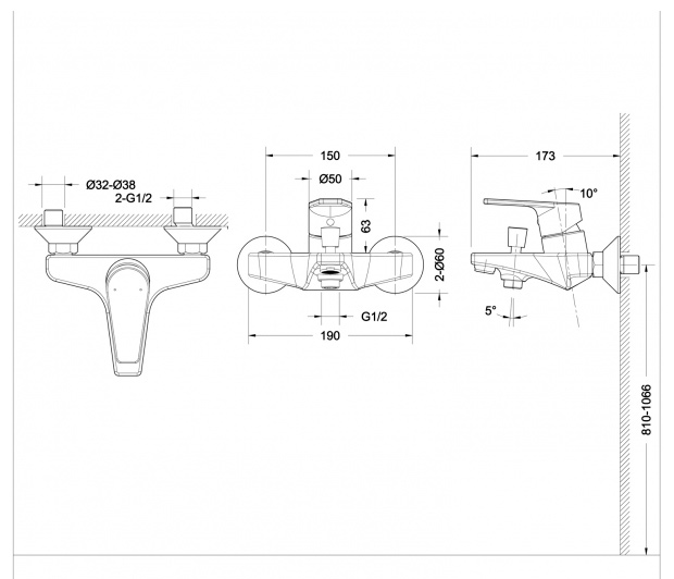 Смеситель для ванны BRAVAT Line с лейкой F65299C-B-RUS