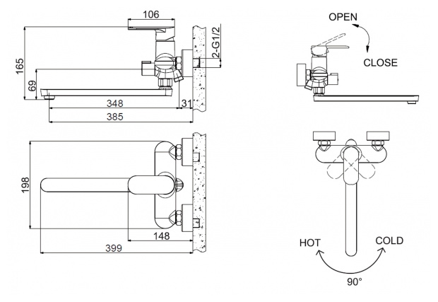 Смесители для ванны с длинным изливом