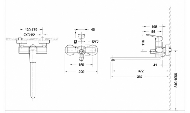 Смеситель для ванны BRAVAT REAL F6121179CP-01L