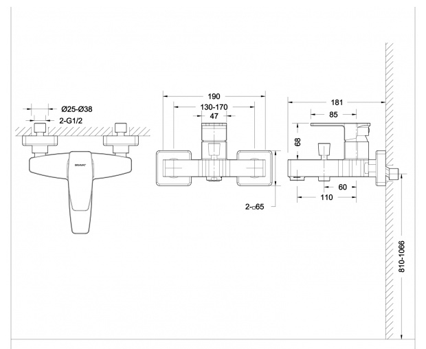 Смеситель для ванны BRAVAT Riffle F672106C-01