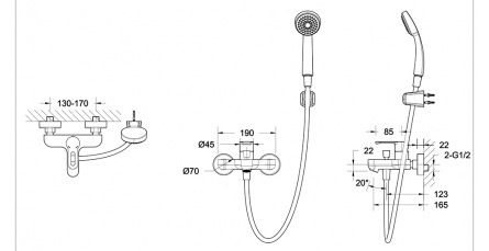 Смеситель для ванны BRAVAT Stream-D с лейкой F637163C-B