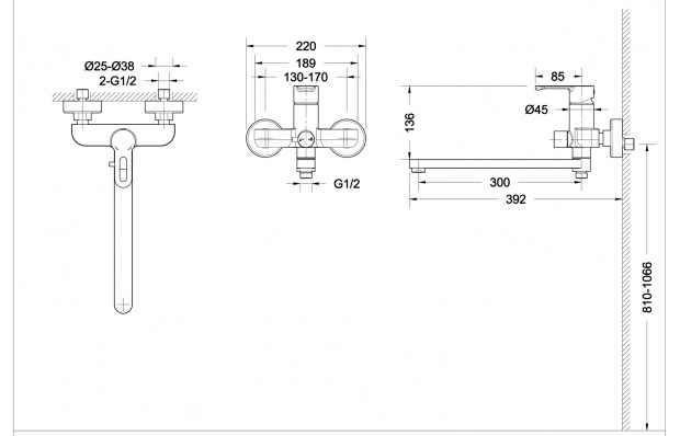 Смеситель для ванны BRAVAT Stream-D с лейкой F637163C-LB