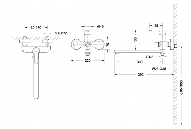Смесители для ванны с длинным изливом