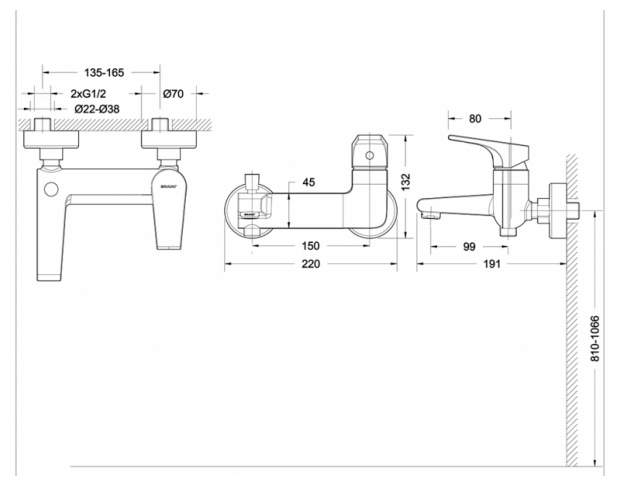 Смеситель для ванны BRAVAT VEGA F6119177CP-01