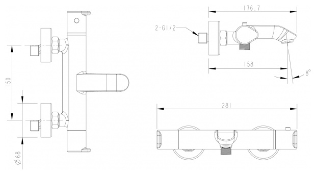 Смеситель для ванны BRAVAT Waterfall с термостатом F673114C-01A-RUS