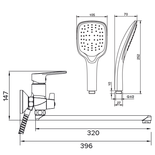 Смеситель Osgard для ванны с длинным изливом PLATT BLACK 87223