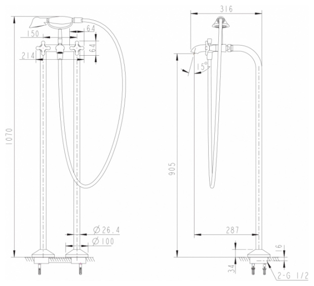 Смеситель отдельно стоящий для ванны BRAVAT Summer Rain с лейкой F677111C-B