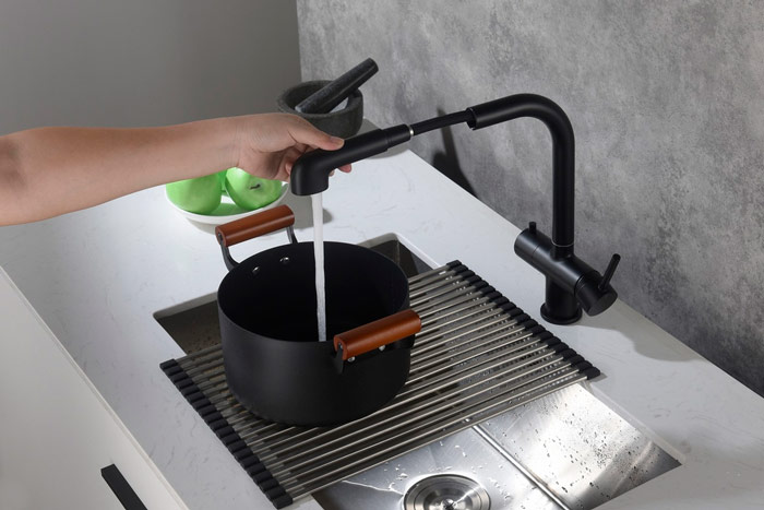 Смеситель с выдвижной лейкой и подключением фильтра для мойки Timo Saona черный 2346/03FL